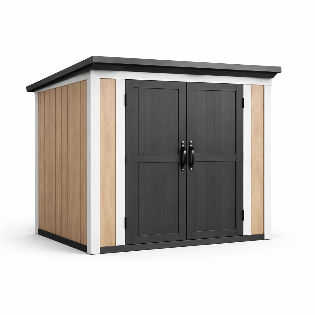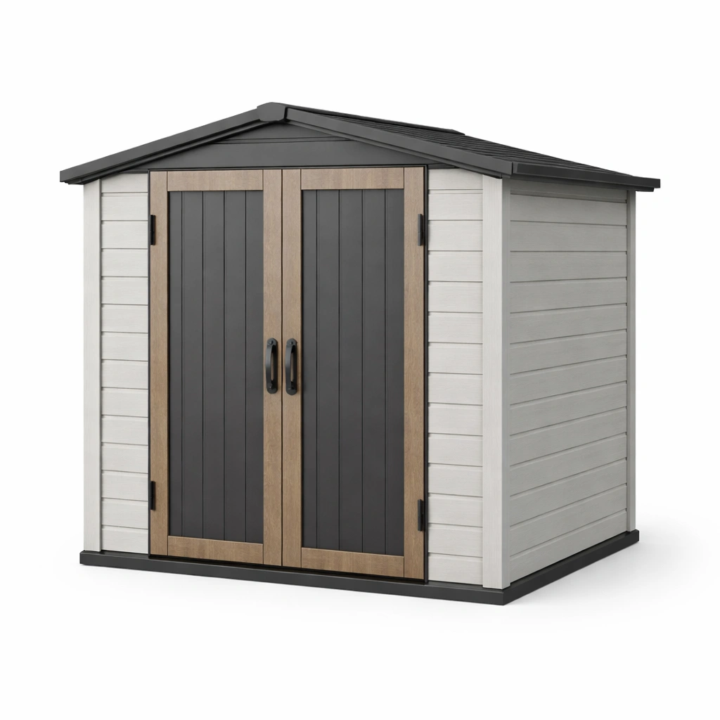 Capanno da giardino in resina grigia e bianca con doppia porta