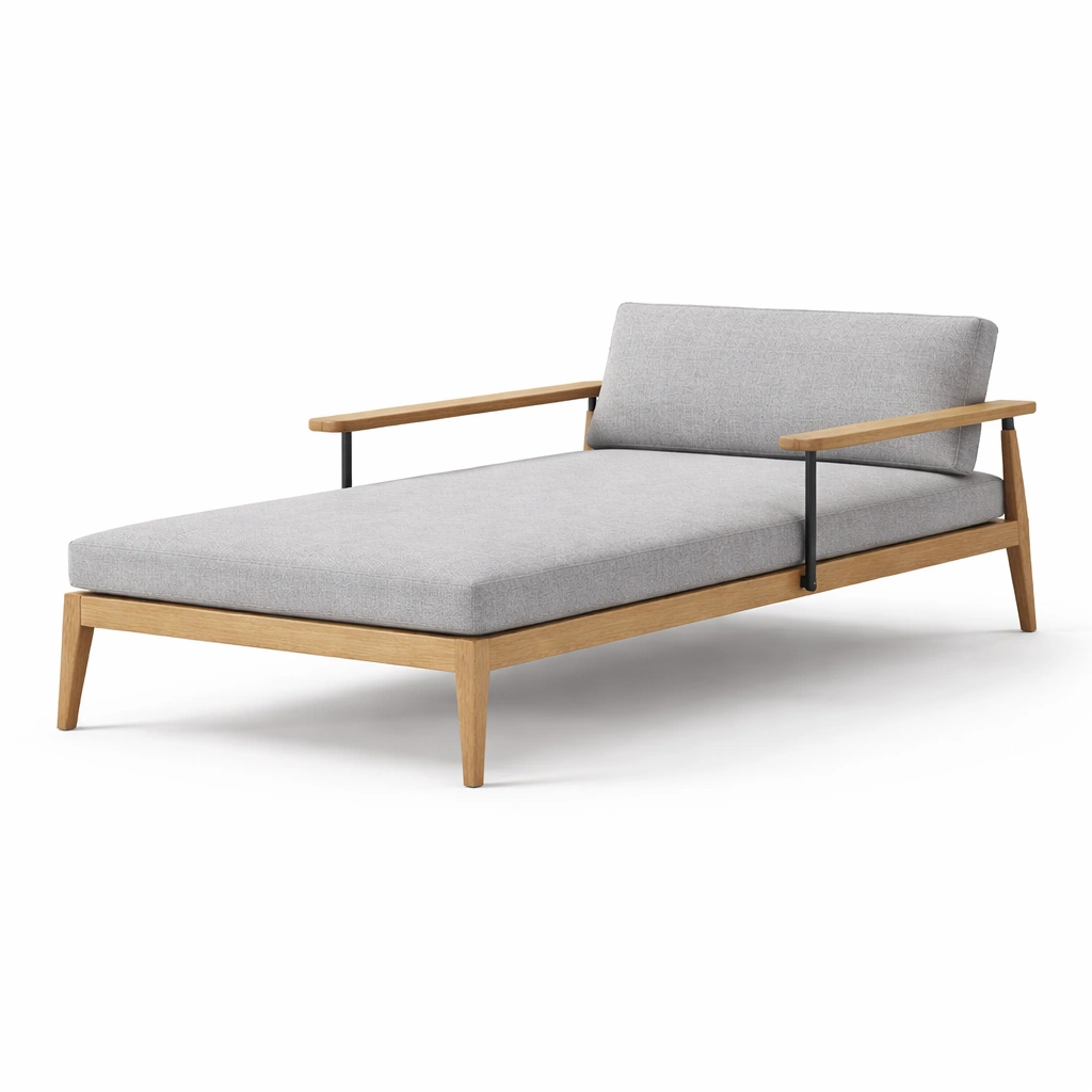 Sdraio in legno e tessuto grigio