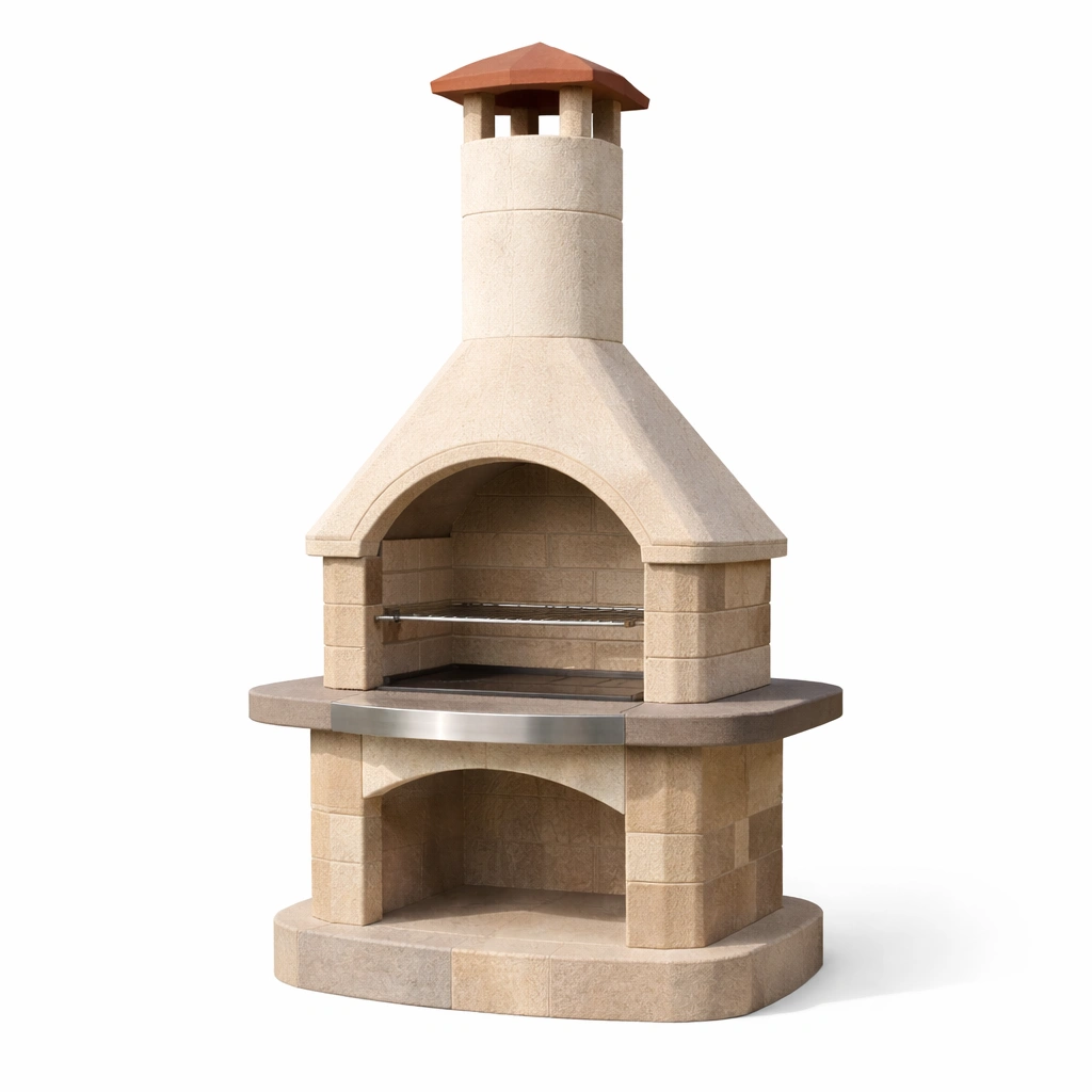 Struttura in pietra con griglia in acciaio inox.