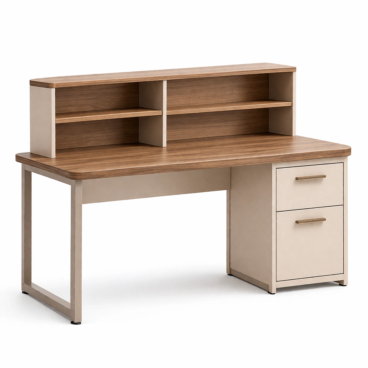 Struttura: Scrivania spaziosa con mensole integrate e due cassetti